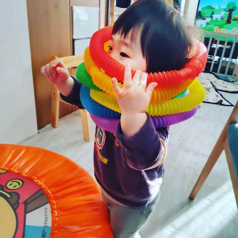 はっぱさんのお宅では、お風呂おもちゃとしてポップチューブが大活躍!プラスチック製なのでもちろん水に濡れても大丈夫です。