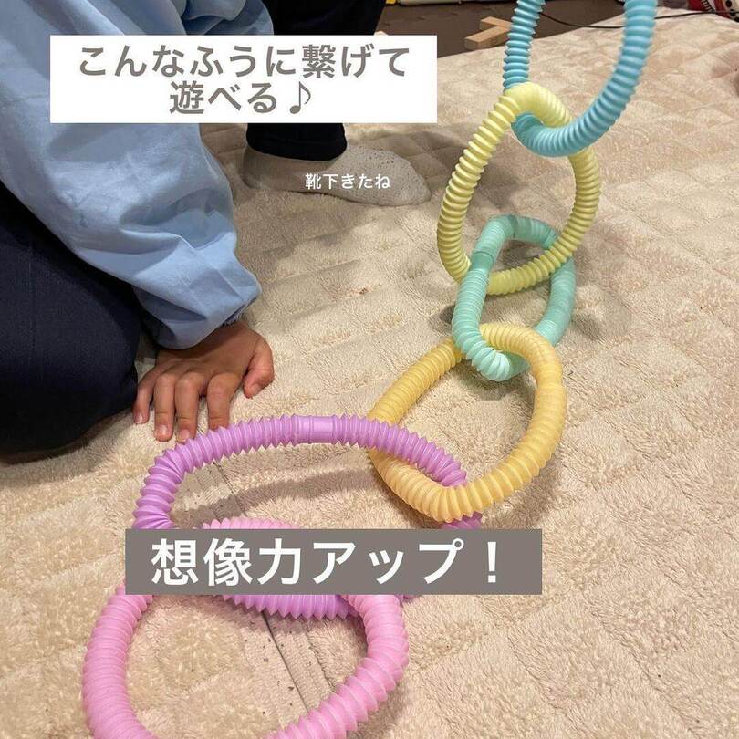 この蛇腹状になったチューブを伸ばしたり縮めたり、チューブ同士をつなげたりと遊び方はとにかく自由♡