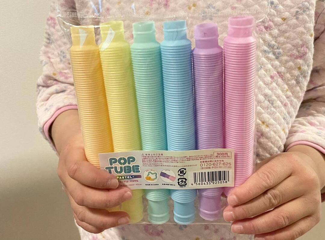 こちらは筆者がダイソーで購入したポップチューブ(税込330円)です。色は写真のパステルカラーと原色カラーの2種類。
