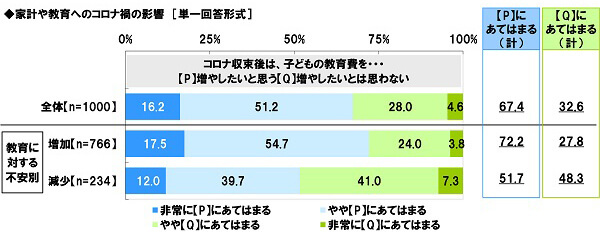 コロナ禍が落ち着いたら、子どもの教育のための出費を増やしたいと考える親が多数派となりました。