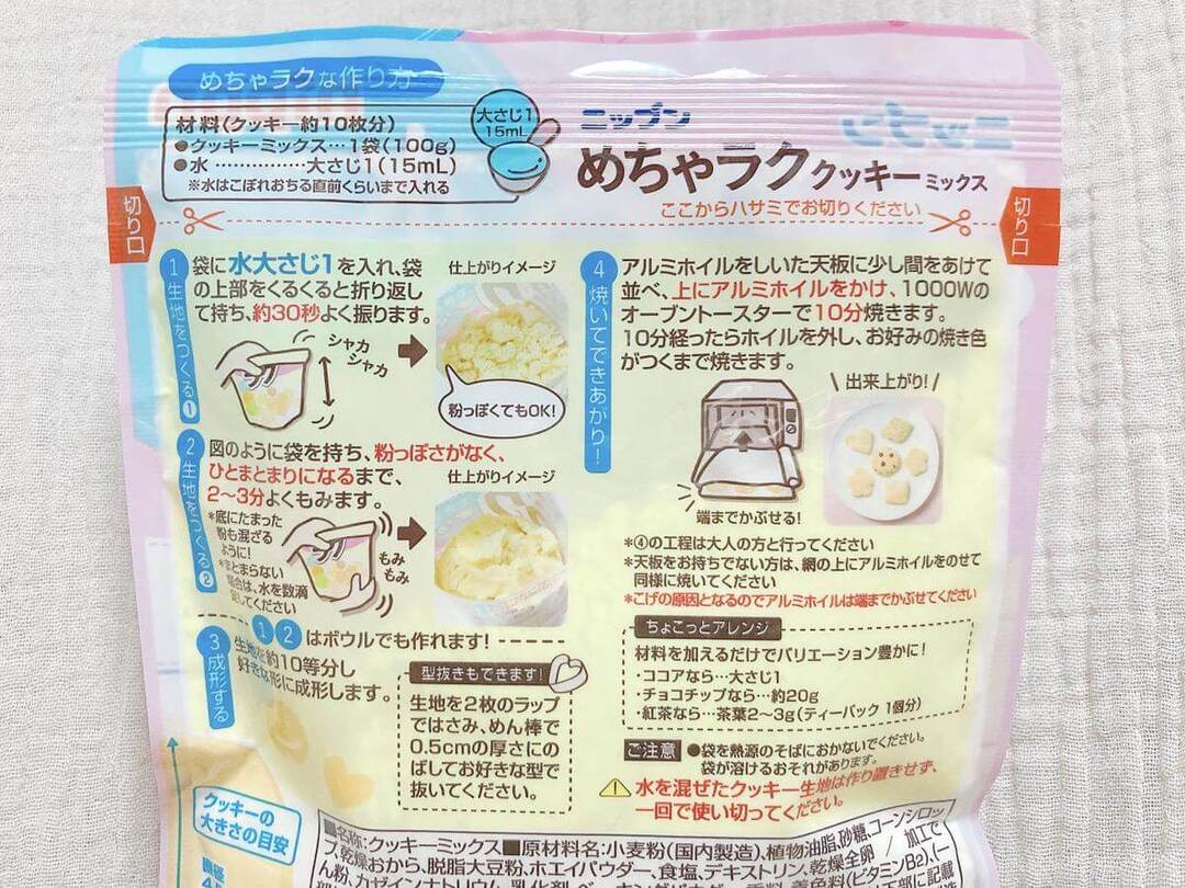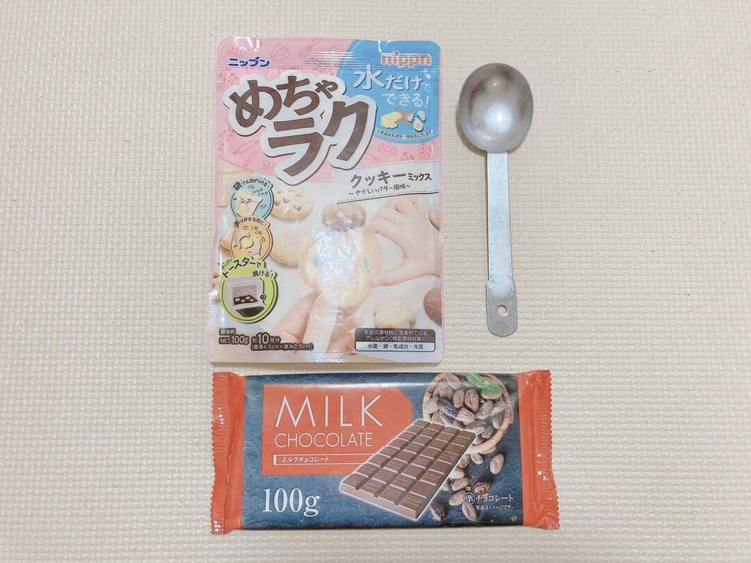こちらが、ダイソーにて110円(税込)で販売中の「めちゃラク クッキーミックス」。なんとクッキーを作るために必要な材料はこのミックス粉と大さじ1杯の水のみ!