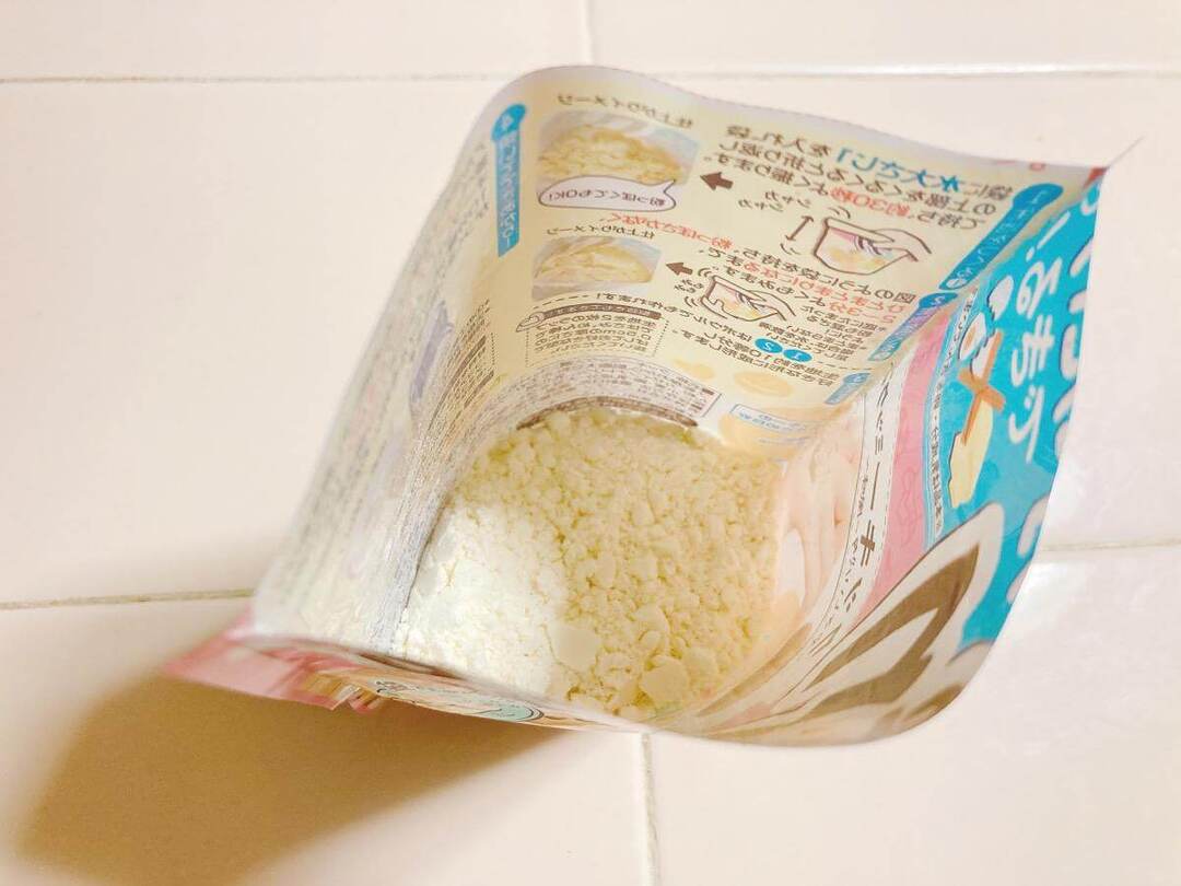 パッケージを開けた様子がこちら。袋のマチがしっかりしているので、底を広げると自立します。ここに大さじ1杯の水を投入。袋の口をくるくるとたたみ、そのまま約30秒振ります。