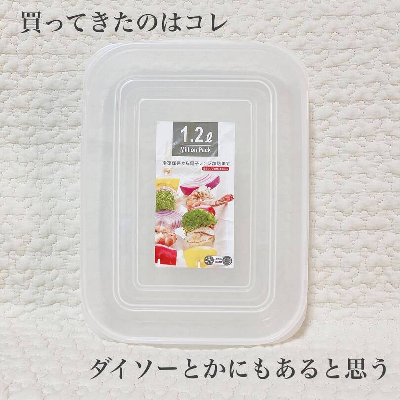 2歳のお子さんを育てるのんちゃんさんが冷凍庫整理に取り入れたのは、キャンドゥで購入した薄型のタッパー容器。このまま電子レンジにも使えます。