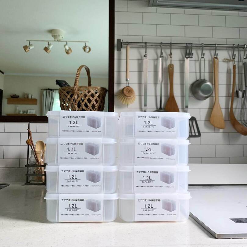 保存容器が充実している100円ショップ。その中でもとくに人気なのがセリアの「立てて置ける保存容器」。むっさんさんは、まとめ買いして冷凍庫収納に活用!