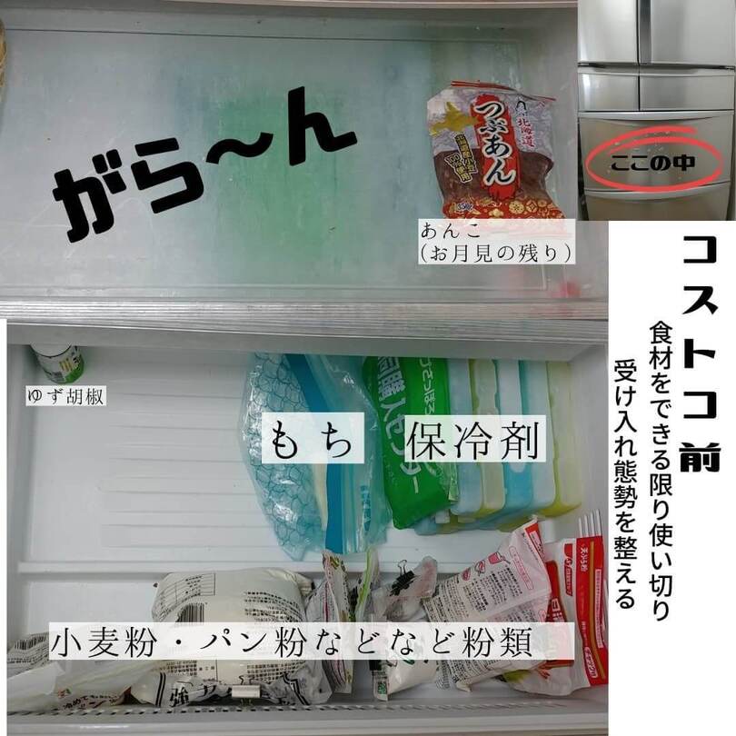 コストコで食材をまとめて購入することが多いみきちさん。コストコに行く前の冷蔵庫はガラガラ…。
