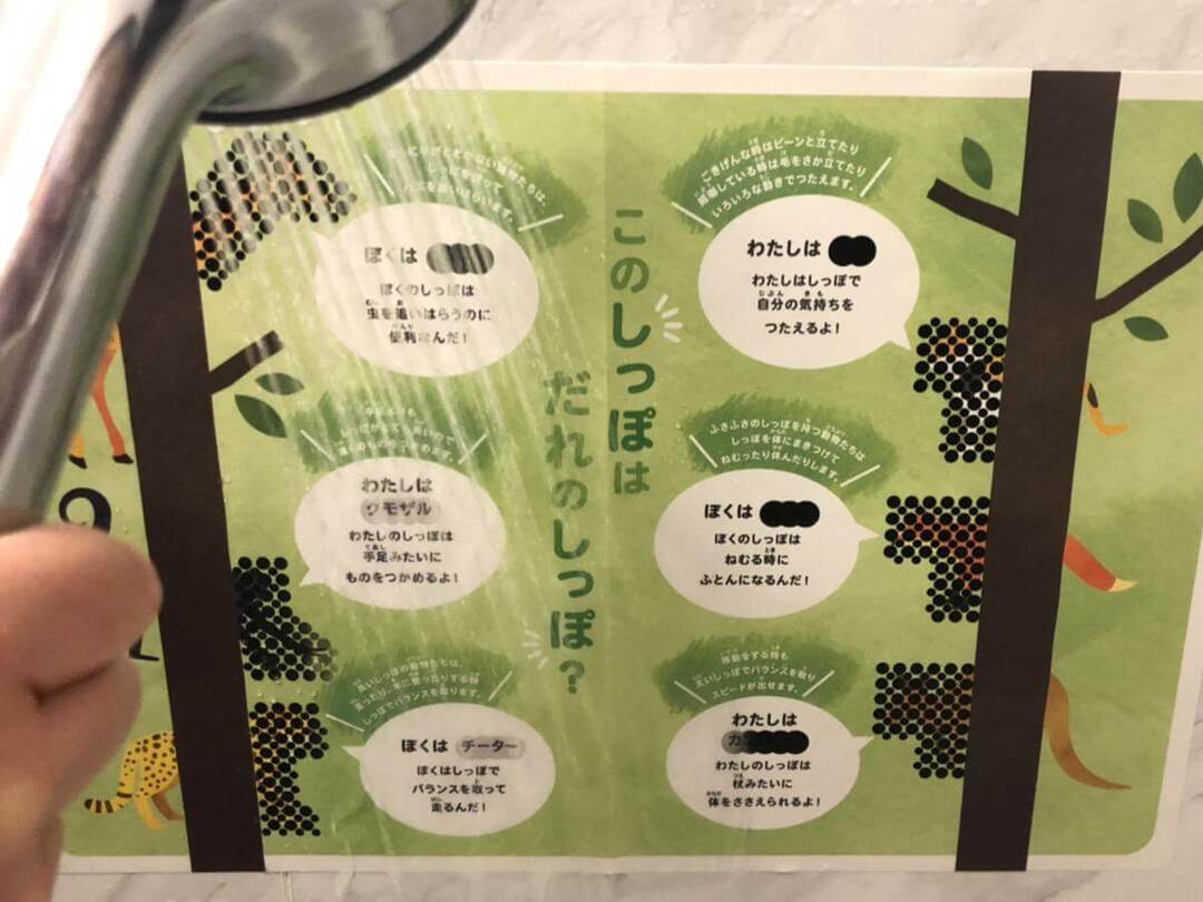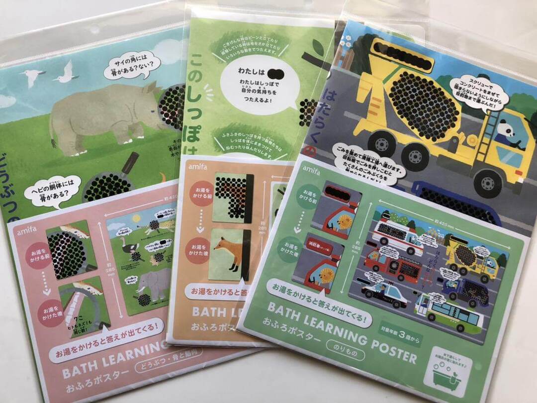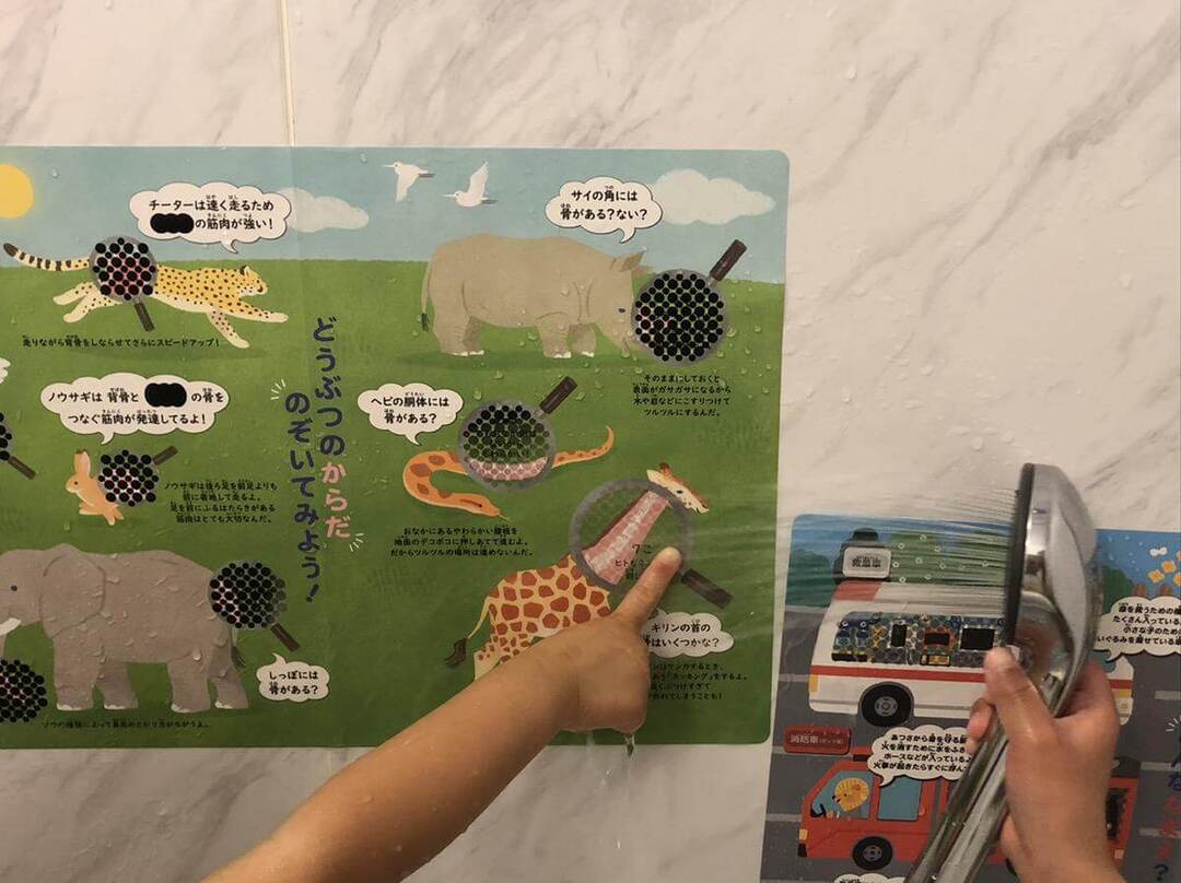 3歳の娘は、「黒い丸が消えるのがおもしろい!」と言うだけあって、ひたすらポスターにお湯をかけて楽しんでいました。 親が体を洗っている間も楽しく遊ぶことができ、いつも以上にお風呂タイムが楽しめた様子。