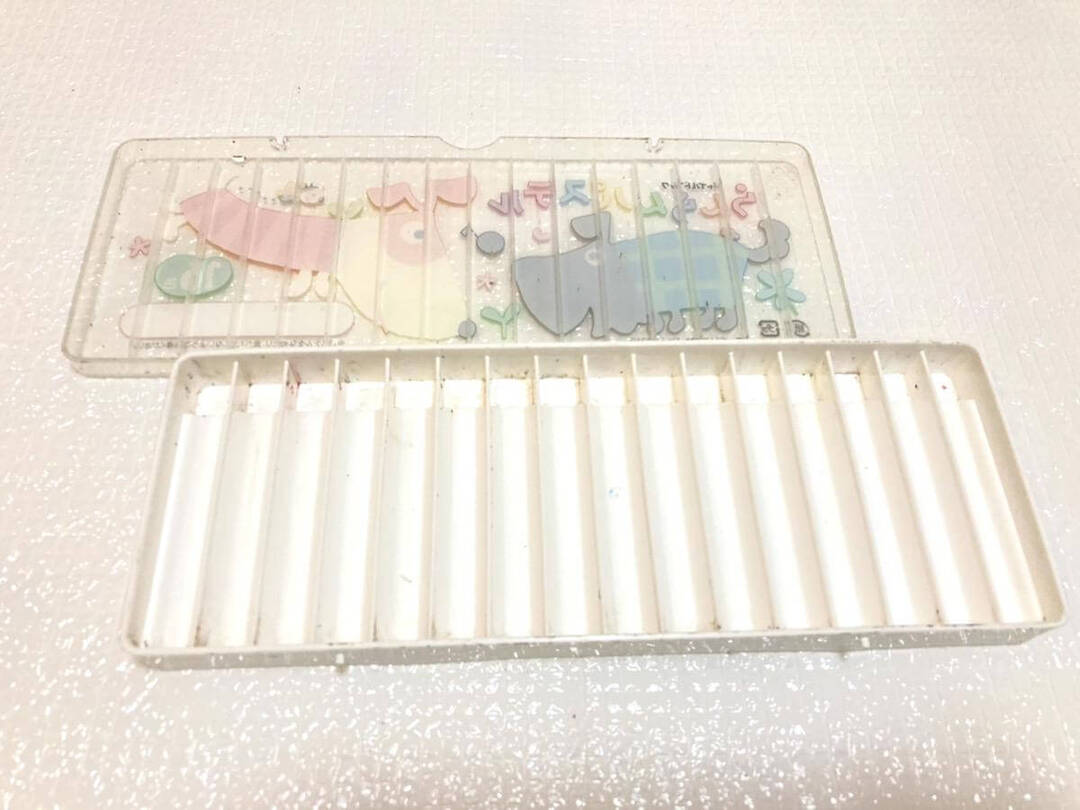 続いてはケース。仕切りに沿って拭いていくと、どんどんクレヨンの汚れが落ちていきます。