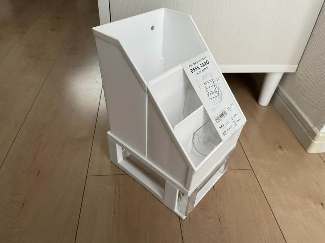 DESK LABOシリーズはデスクの整理整頓に使う便利なアイテムで、本来は写真のように組み合わせて使います。これはレジとしての役目を終えたあとも便利そう!