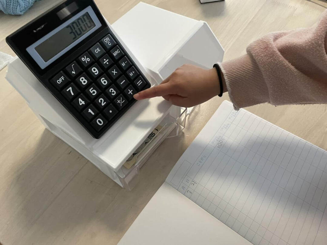 意外と上出来だったので、このまま使い続けようかな?と思いましたが、よく考えると本物の電卓がついているから、お小遣い管理もできるのでは…?と活用してみることに。