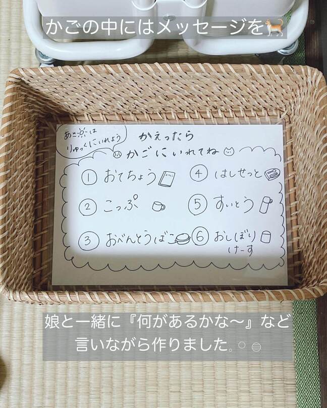 忘れ物しにくい工夫や、子どもが自分でお支度できるような仕組みづくりがとても参考になりますね。