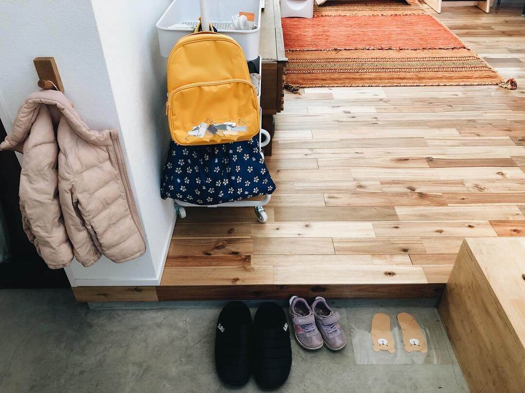 シンプルなランドセルスタンドは、朝送り出すとき、ここに荷物がなければ忘れ物なし!とひと目でチェックすることができます。 子どもたちにも分かりやすく、この置き場にしてから忘れ物がなくなったんだそう!