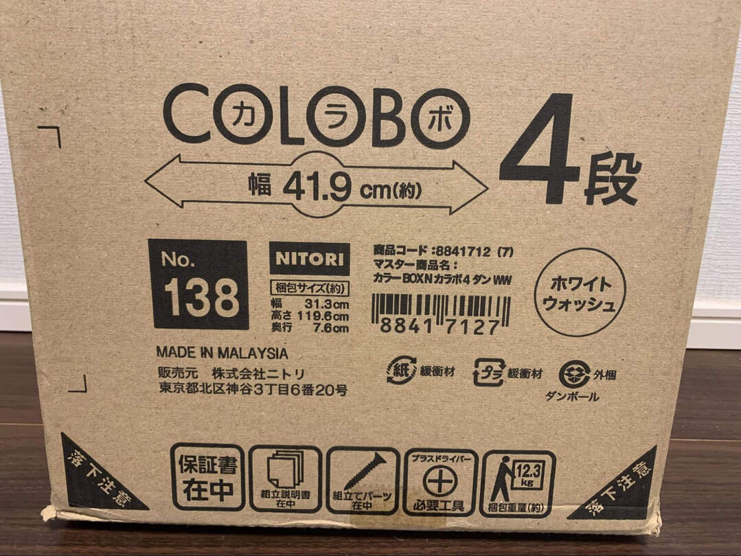 カラーボックスはこちらのタイプです。ニトリには「Nクリック」というカラボのシリーズもありますが、そちらでは同じ作り方はできませんので、ご注意を!