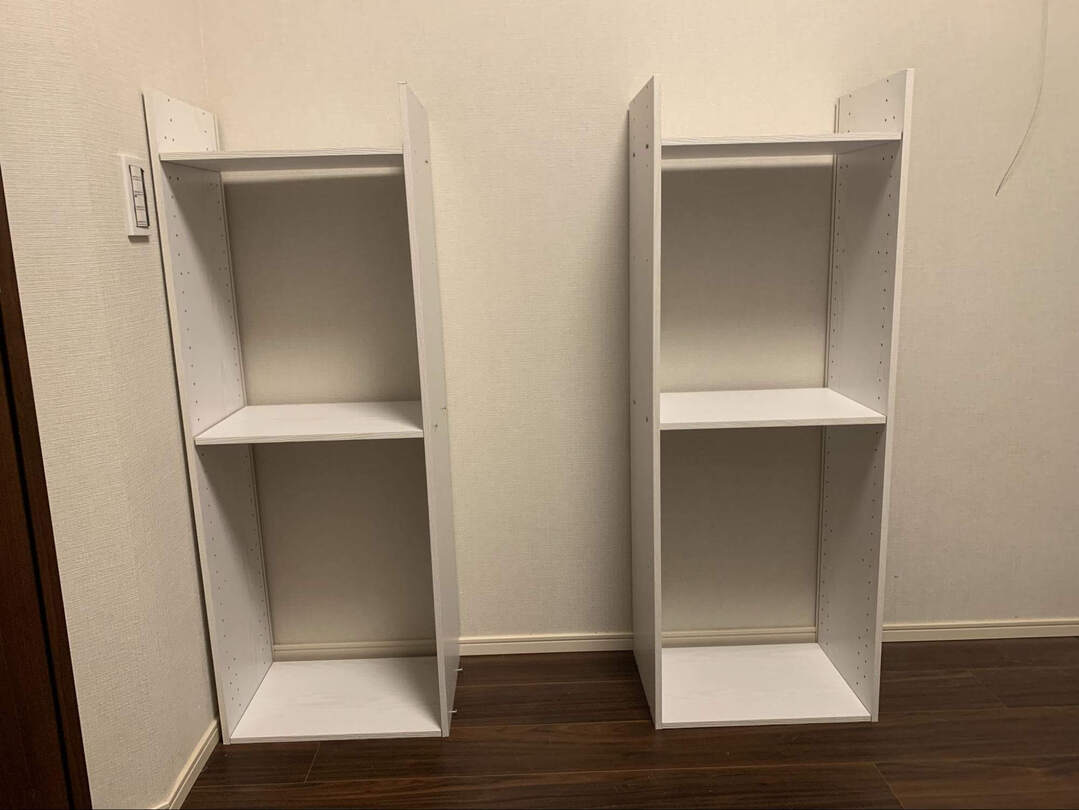 2個を組み立て終わったら、間にちょうどカラボ1個分の幅のスペースをあけて、並べて置きます。