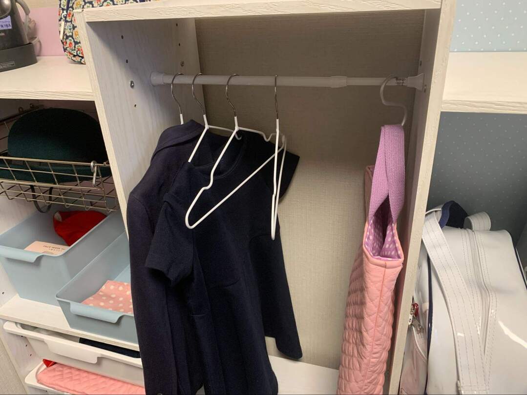 掛けたい洋服の量にもよりますが、幼児用とはいえ制服のジャケットやコートなどをかける場合は重量があるので、注意が必要です。耐荷重の大きいものを使ったり、必要に応じて突っ張り棒のズレ防止アイテムも併用することをおすすめします。