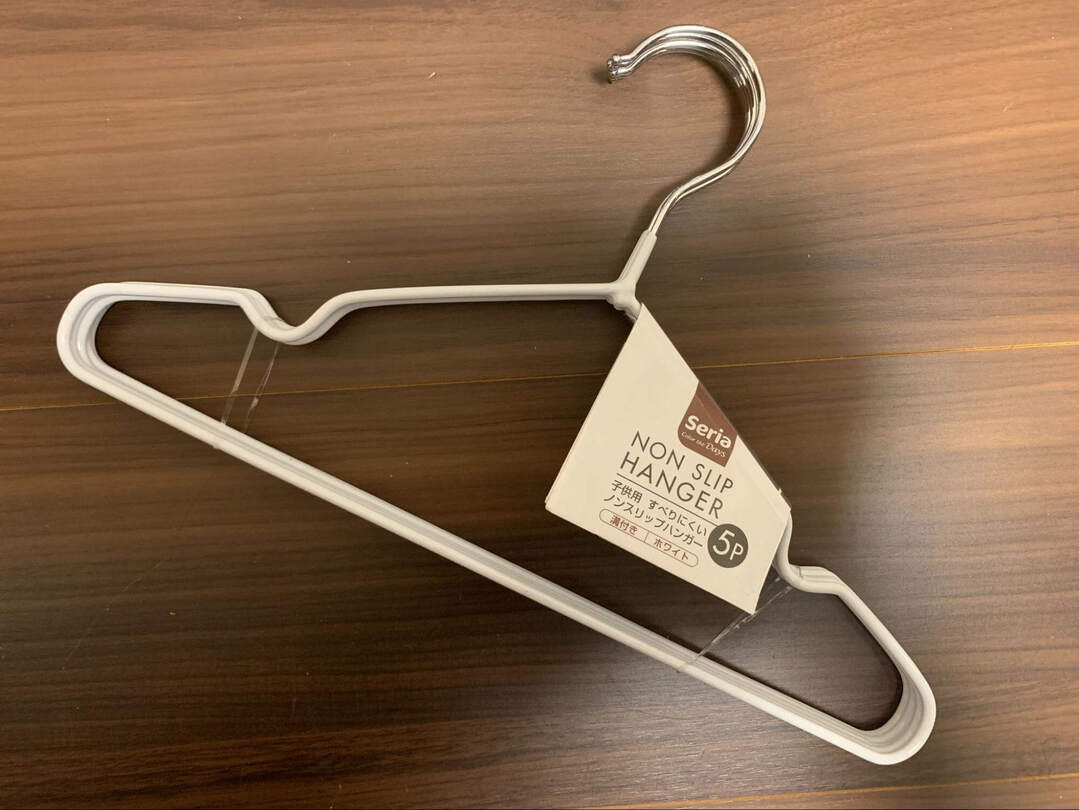 ちなみに、こちらのハンガーはセリアの「子供用すべりにくいノンスリップハンガー」を使いました。