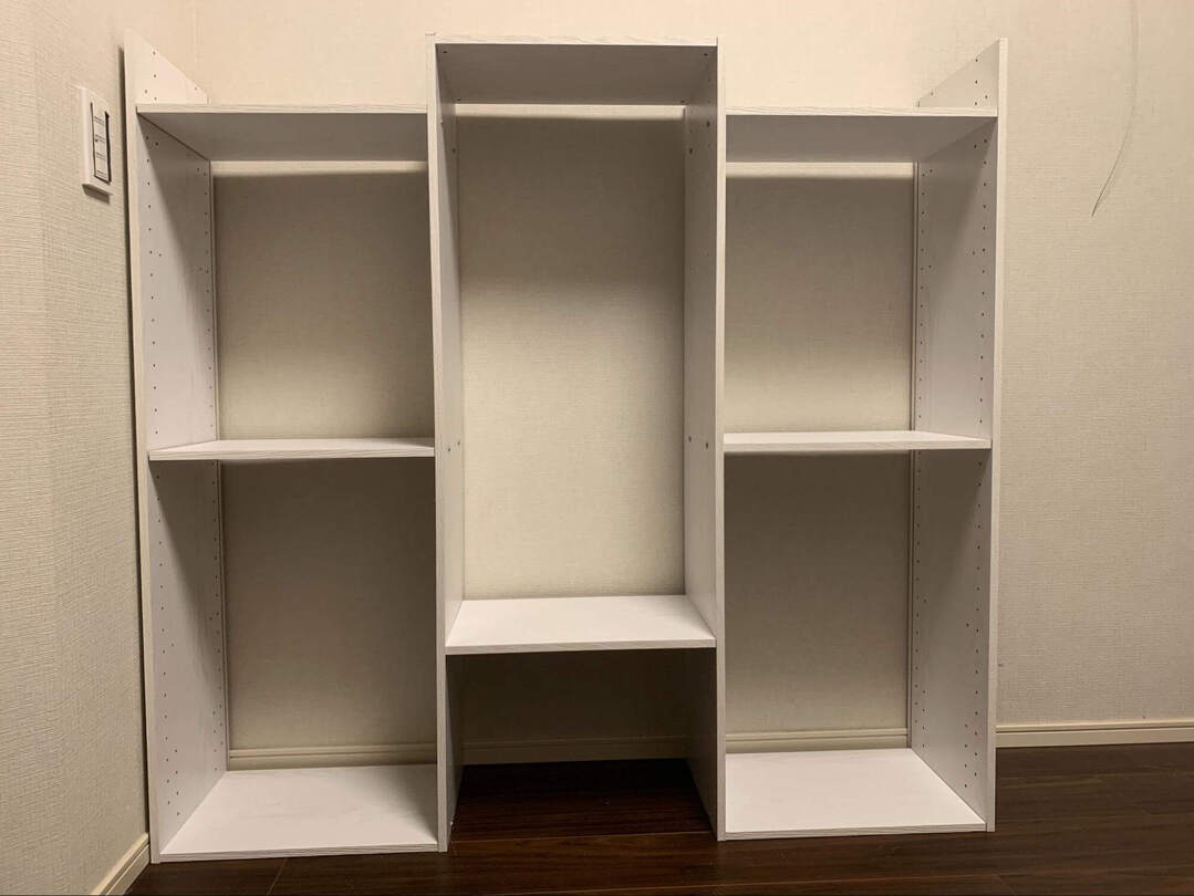 中央はハンガーラックにするので、洋服がゆとりをもって掛けられる高さのスペースを作ります。