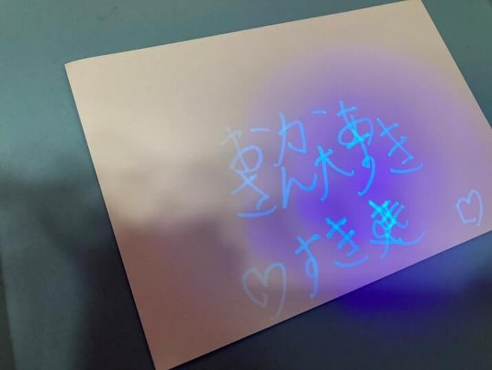 まず1つめに紹介するのは、「秘密のお手紙」。ただの紙かと思いきや、ライトを当てると文字が見えるお手紙なんて…ステキですよね♪