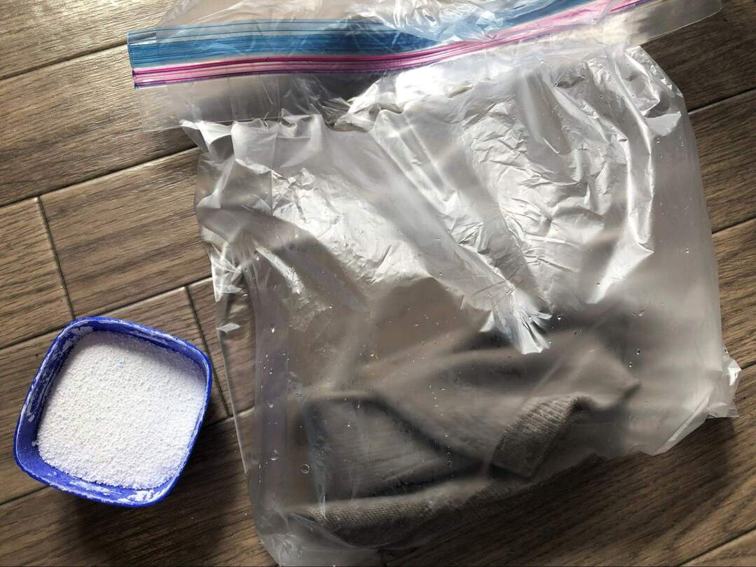 汚れた靴下のワイドハイター漬けやオキシ漬けにも!ポリ袋を変えれば何回でも使い回せるのがうれしいですよね。