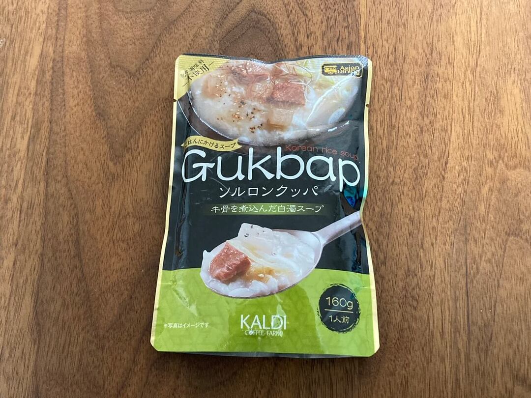 辛くなく、韓国でも朝食や二日酔いの朝にも食べられることが多いソルロンタンのクッパです。トロトロの牛肉と大根、ネギが入ったコクのある白濁スープのパウチ。温めてご飯にかけるだけでソルロンクッパの完成です。