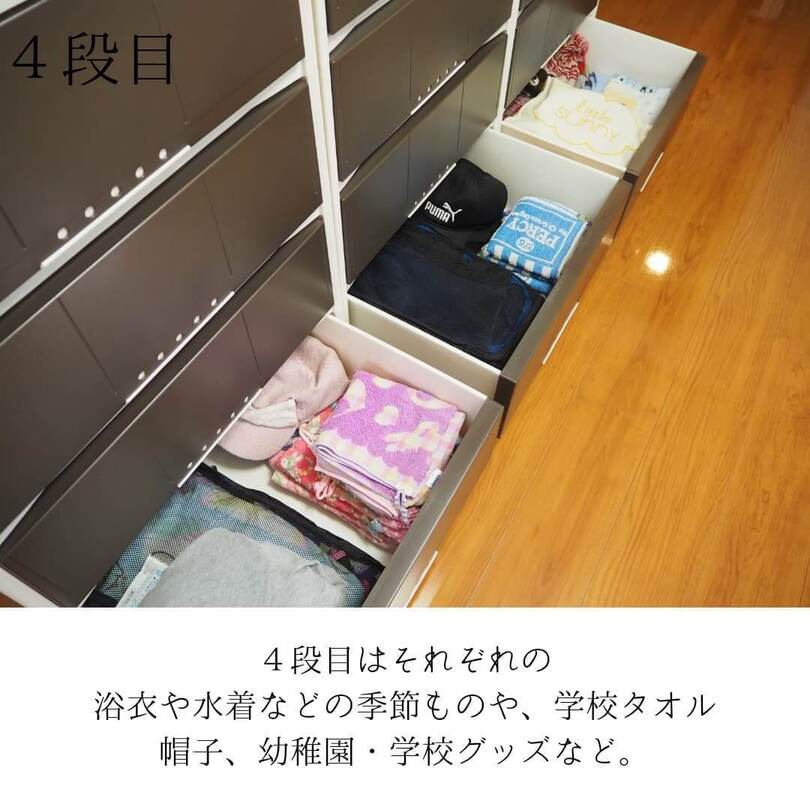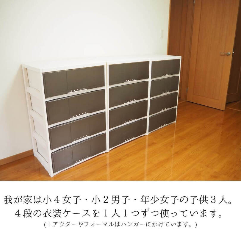 ハンガーにかける洋服以外は、こちらの衣装ケースを1人1個用意して収納しています。