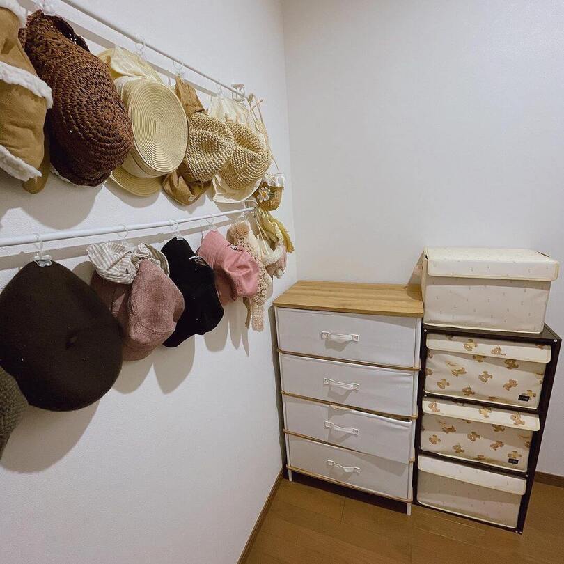 また、洋服とセットで選ぶことが多い帽子は壁面に!