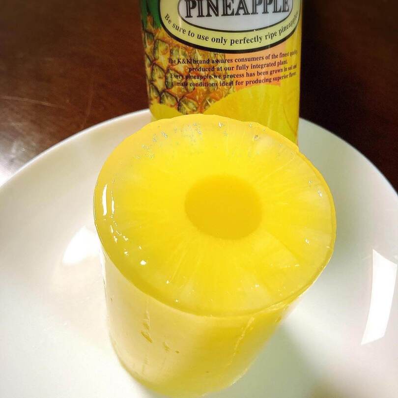 こちらはyokoさんの娘さんが作った丸ごとパイン缶ゼリー。輪切りのパインはそのままゼリーにすると見た目がとてもきれいですね。