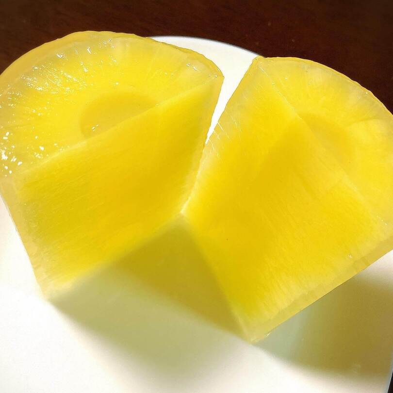 さらにこのパインゼリー、縦に切ったときの断面の美しさも素晴らしいんです。思わず眺めていたくなっちゃうような断面は、写真映えするのでSNSにアップしたくなりますね♡