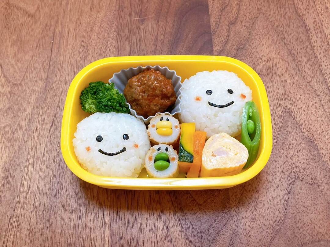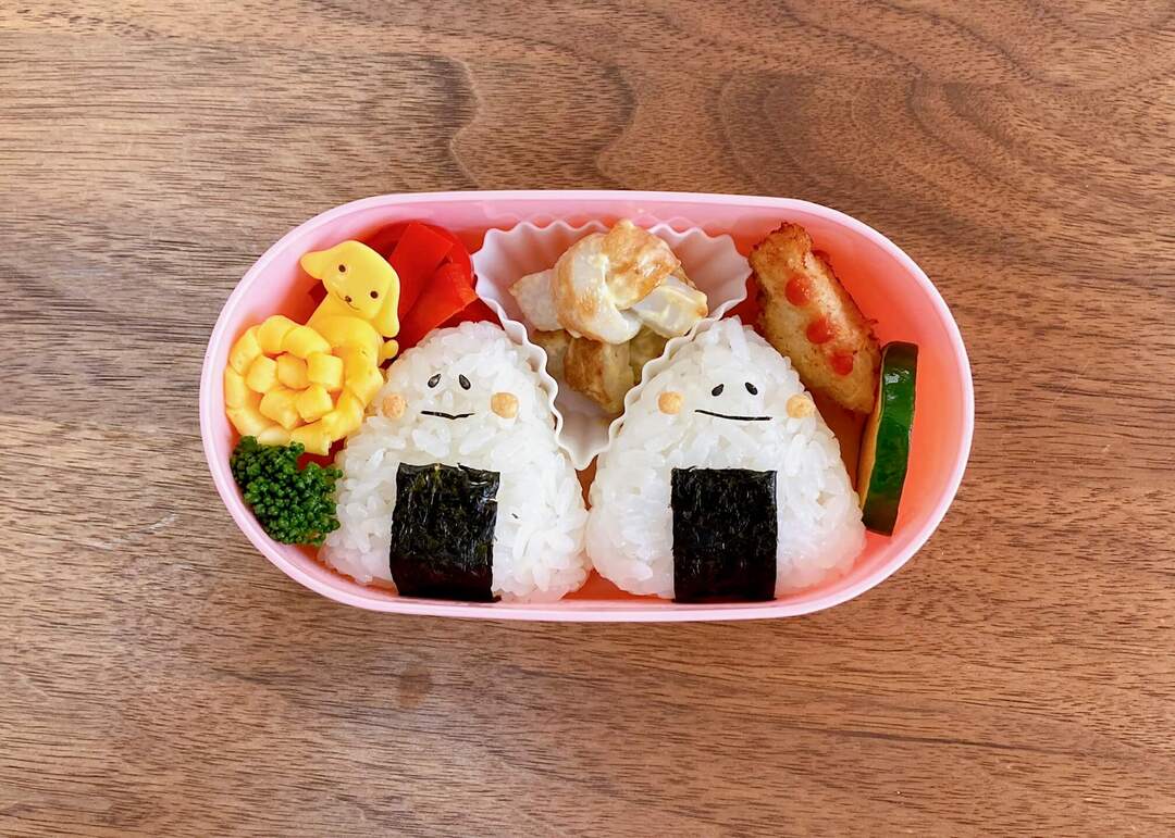 黒ゴマで目をつけ、ケチャップでほっぺを色づけたら完成♪目の位置で表情が変わるのでいろいろ試してみてください!