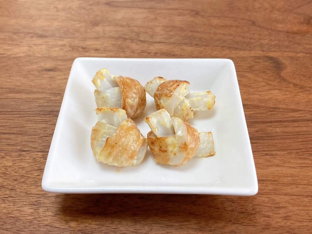こちらはちくわをくるっと結んでサッとマヨネーズで炒めたもの。味付けはマヨネーズだけでOK!コクがプラスされておいしいですよ。