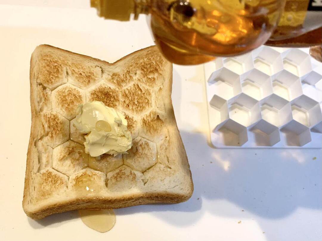 ハニカム模様のおかげで、はちみつがしっかり染み込んでます。じゅわじゅわのバター&はちみつ、サクサクの食パン。こんなおししいハニートーストがおうちで食べられるなんて最高ですね。