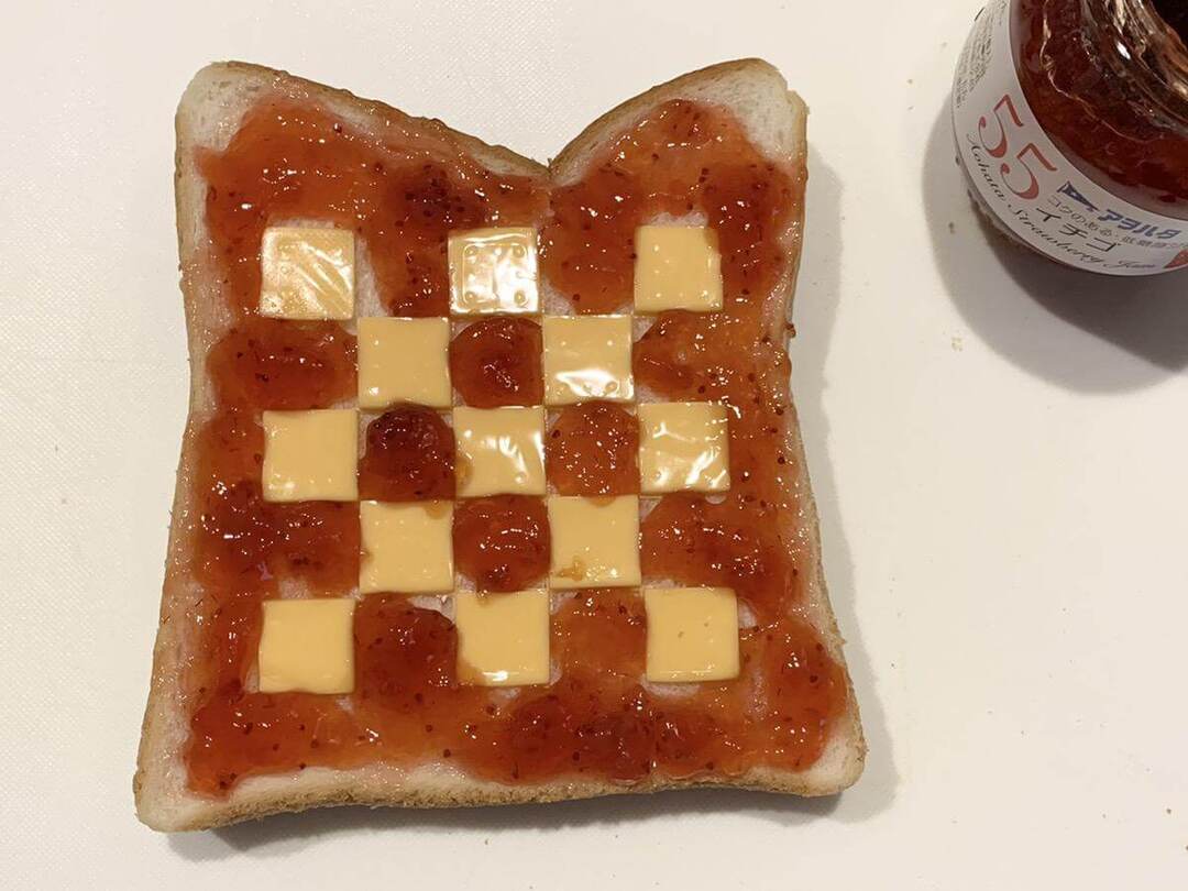 残ったチーズも「押し出し型」で出せるので、同じようなチェック柄トーストが一気に2枚作れました。