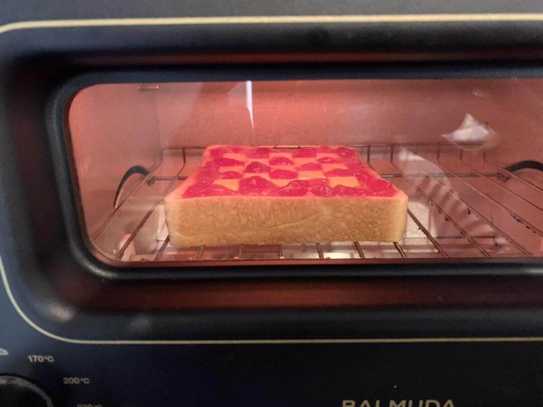 チーズ以外の部分にいちごジャムをぬってデコレーション。本当にこれをあの不器用なわたしが作ったのか…?と自問自答してしまうほど、かわいい仕上がりです。