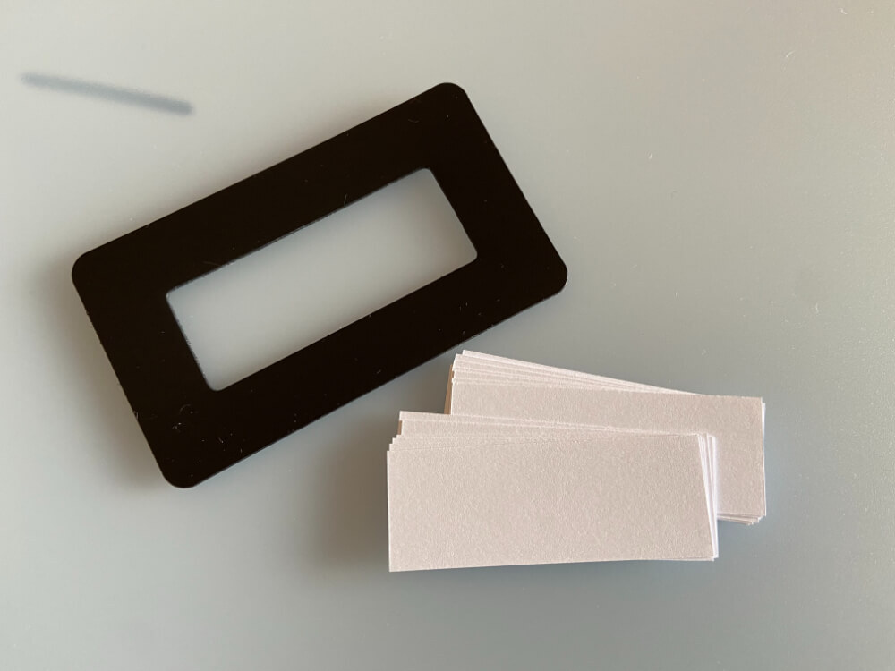 インデックスは20枚付属していて差し替えることもできます。黒いのは切り取り枠で、好きな紙などを使ってオリジナルの見出しラベルを作ることも可能。