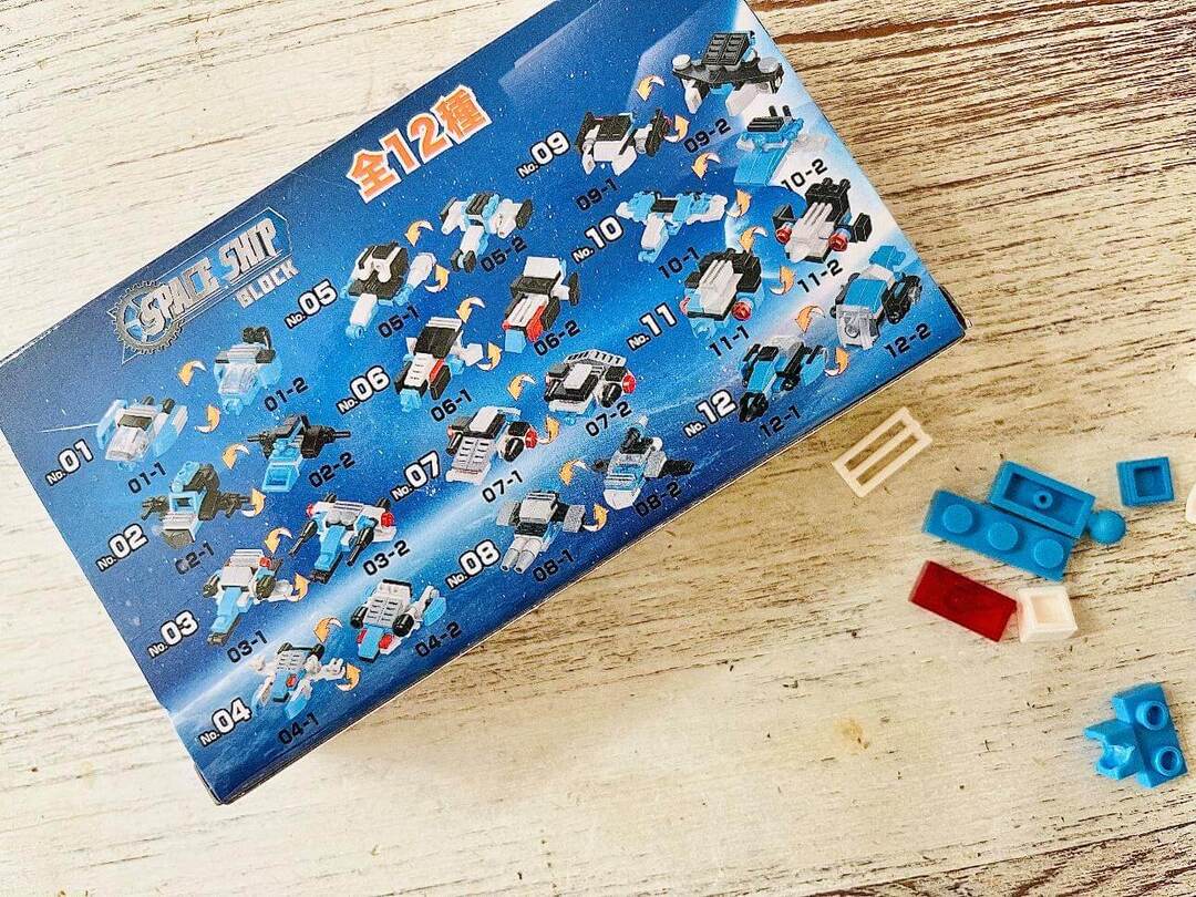 全12種類のブロックが販売されており、全部集めるとさらに大きな宇宙船またはロボットを作ることができますよ!
