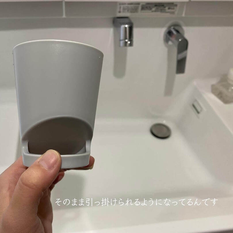 こちらは、"引っ掛ける収納"を前提に作られているダイソーの「水切れがいい洗面コップ」。デザインもシンプルで色もスタイリッシュ!