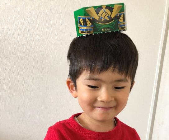 赤かぶとは、今日の洋服にも合っていたのでなおさら大興奮!まるで戦隊ヒーローの赤レンジャーのようです。かぶとをのせたまま動いて「最後までかぶとを落としちゃダメ」ゲームをしても楽しいですよ。
