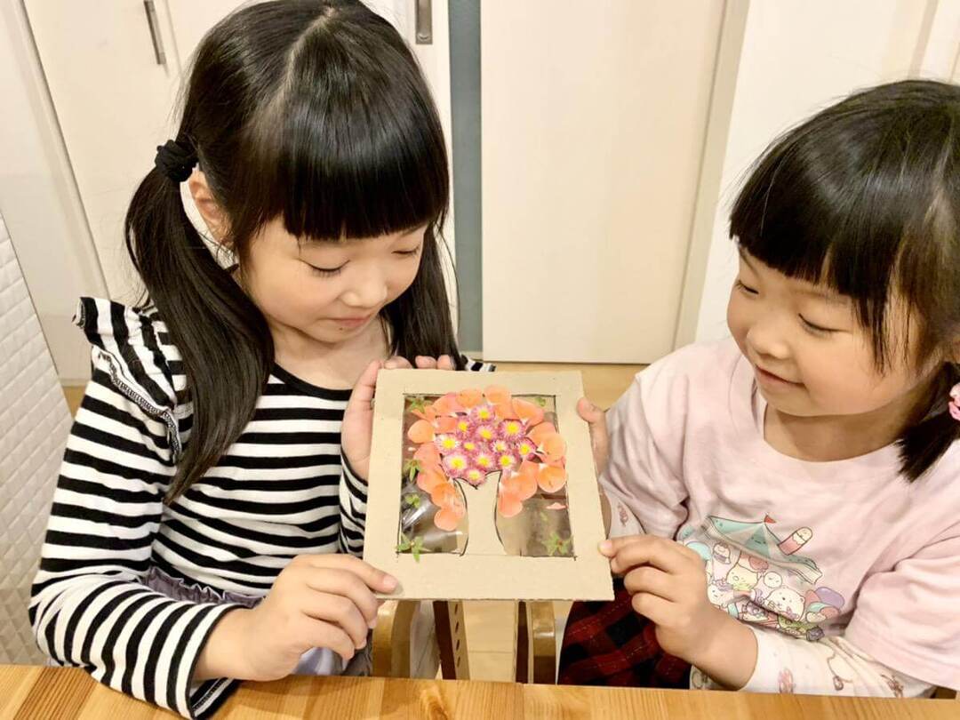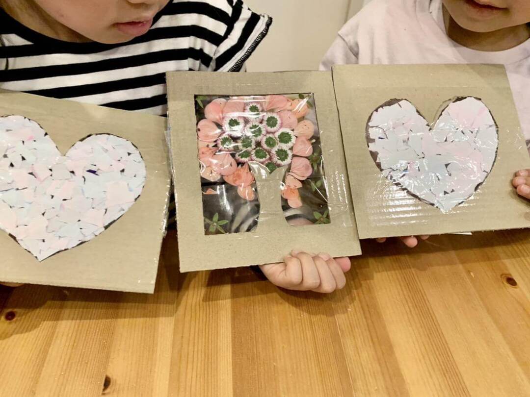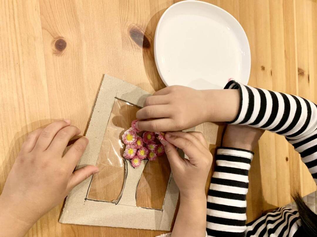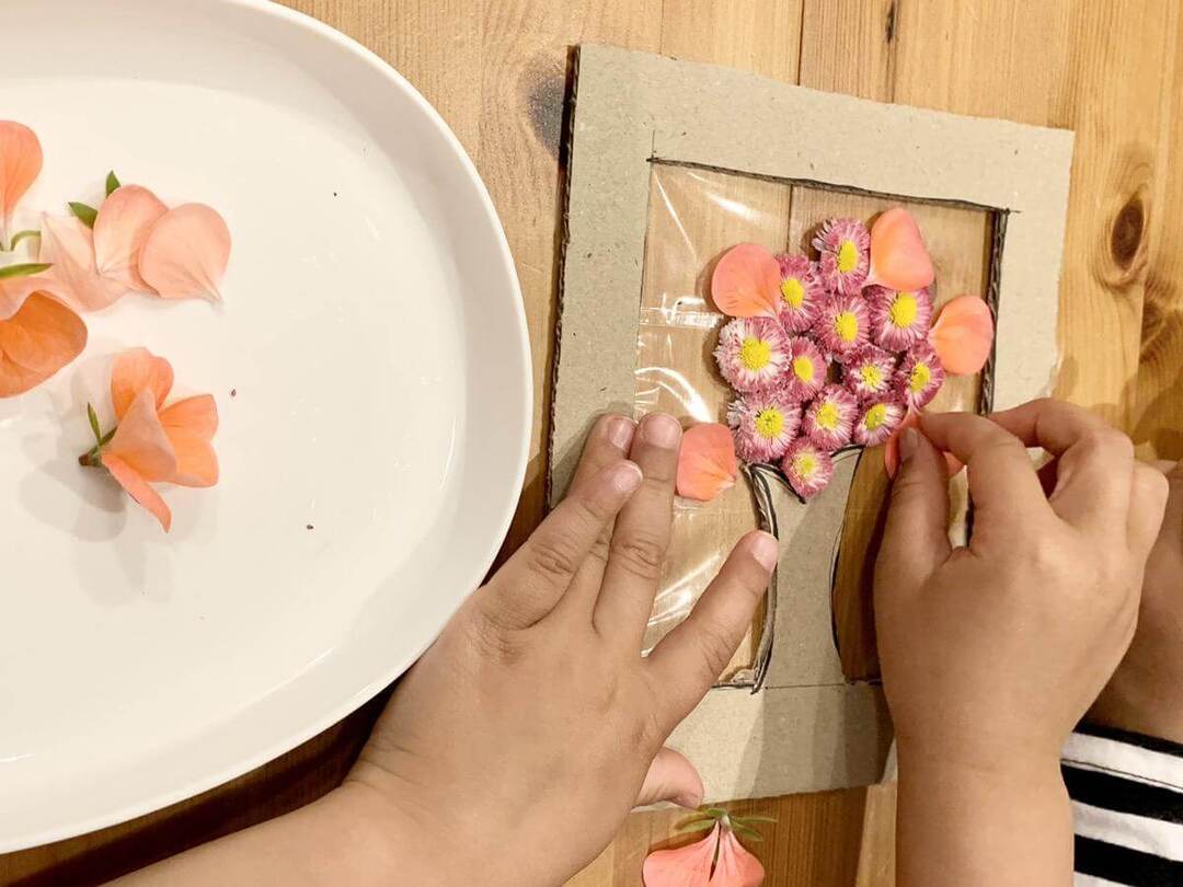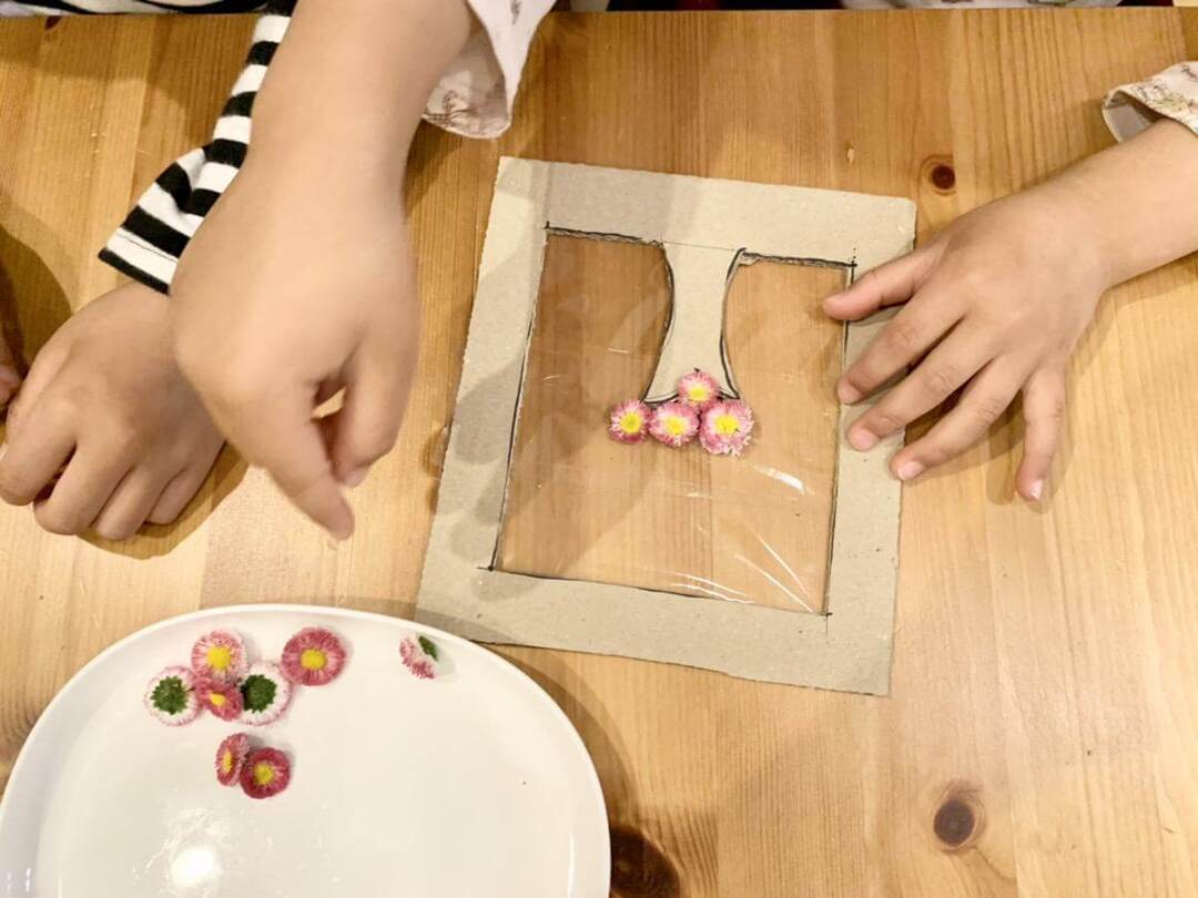 そんな時、海外のインスタグラムで見かけたのが季節のお花を使ったすてきな工作。 段ボールの枠に集めた野の花をペタペタと貼りつけていくだけ!お散歩しながら作れて、飾ってもかわいい♡