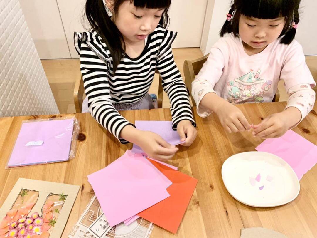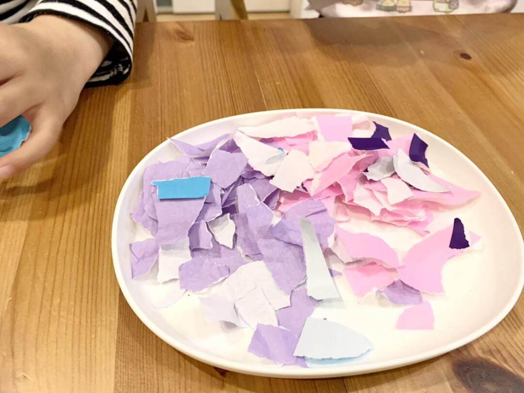 大好きなピンク、紫、水色をひたすら細かくちぎっていくのも楽しかったそうです。
