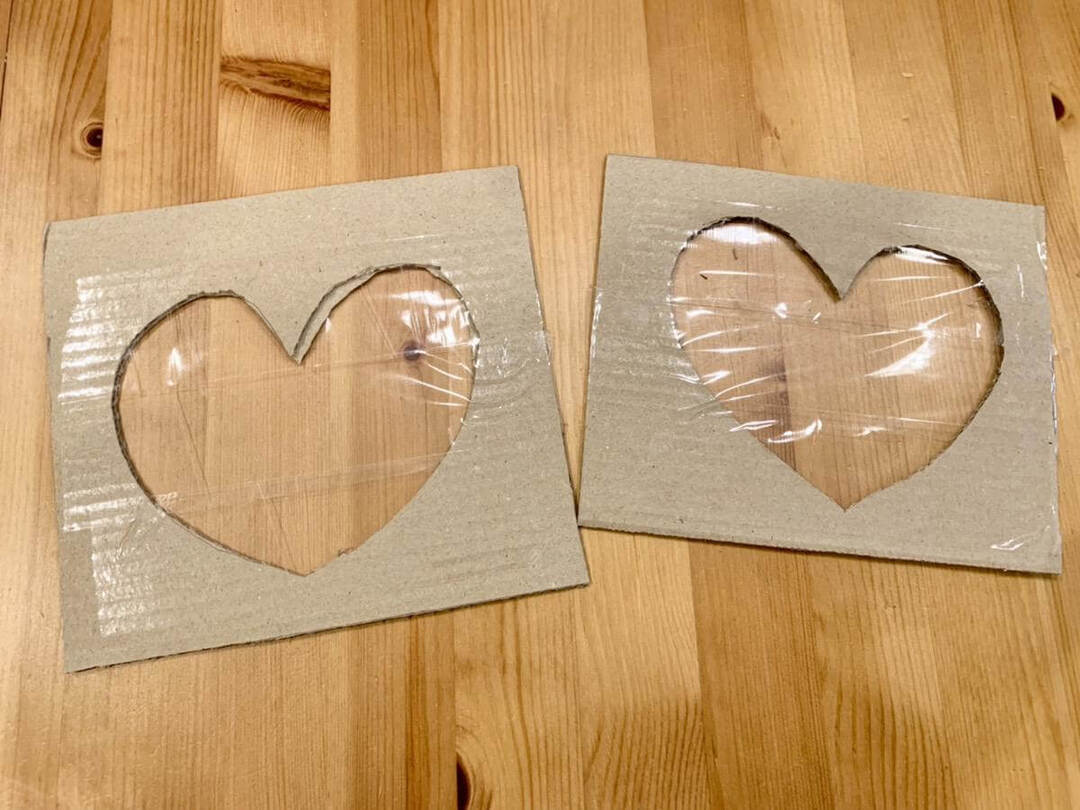 何の形がいいのか聞いたところ、二人そろって「ハートがいい!」とのこと。若干いびつではありますが、ハート形の枠を作りました。