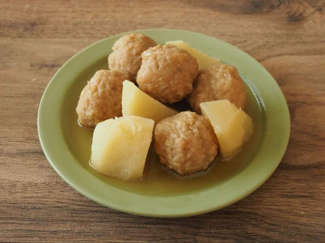 続いて和食にアレンジ。じゃがいもと肉だんごをめんつゆベースの味付けで煮ました。