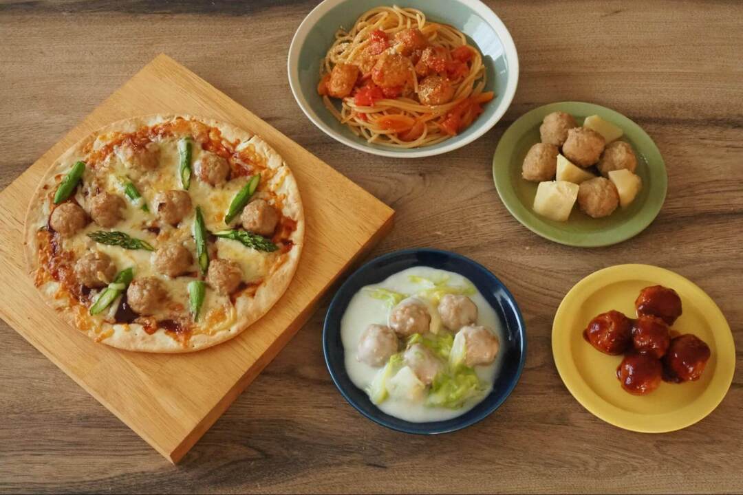 今回はメインおかずや主食になりそうな5種類のメニューを作ってみましたが、肉だんご自体は味付けもほんのりでクセもないので使いやすく、ほかにも野菜と一緒にスープにしたり、中華風のあんかけ、冬なら鍋料理と大活躍間違いなし。