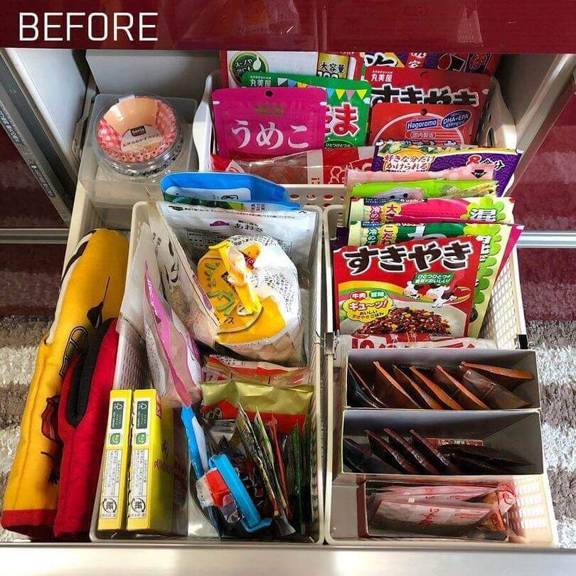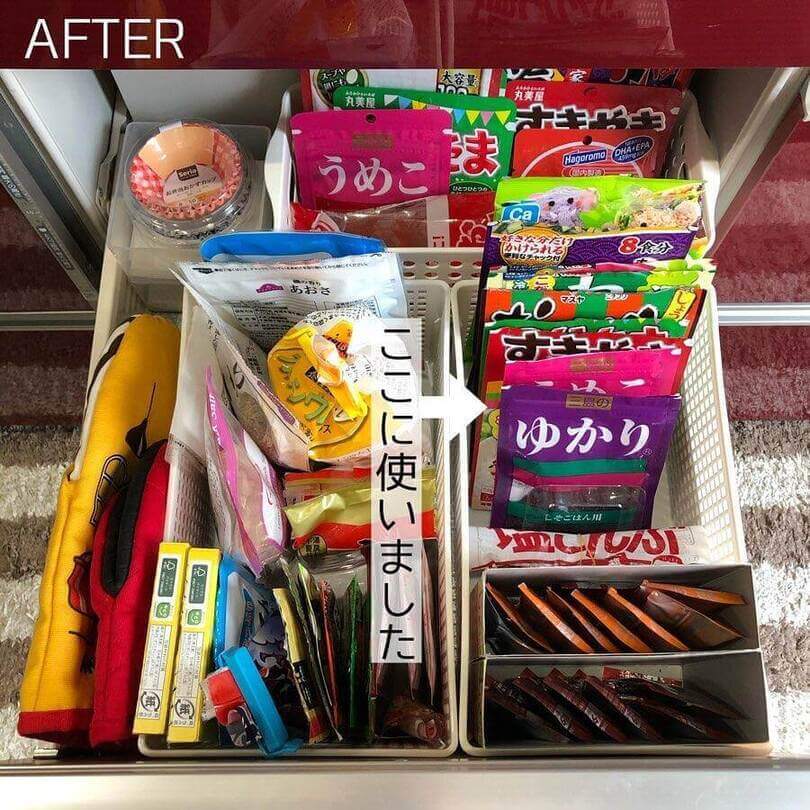 ふりかけなどの袋物は中身が減ってくると、雪崩のように崩れてしまい奥に使いかけのものが眠っていた…なんてことも。