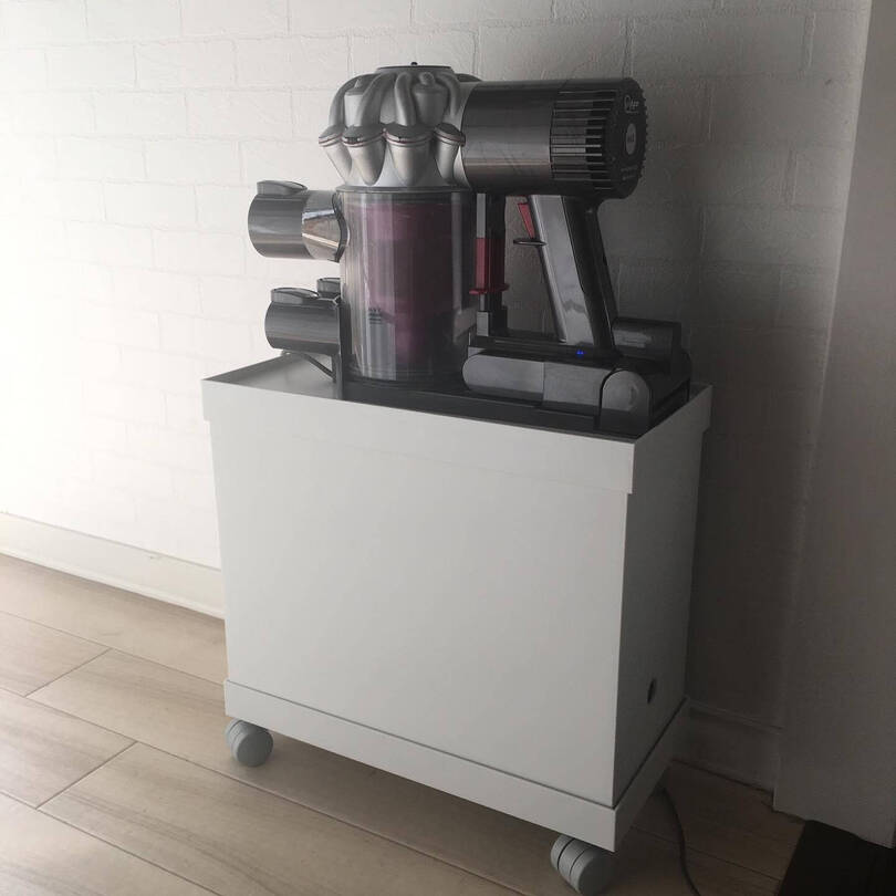 無印良品のファイルボックスにキャスターを取り付け、可動式の掃除機充電スタンドを作ったHi_chanさん。