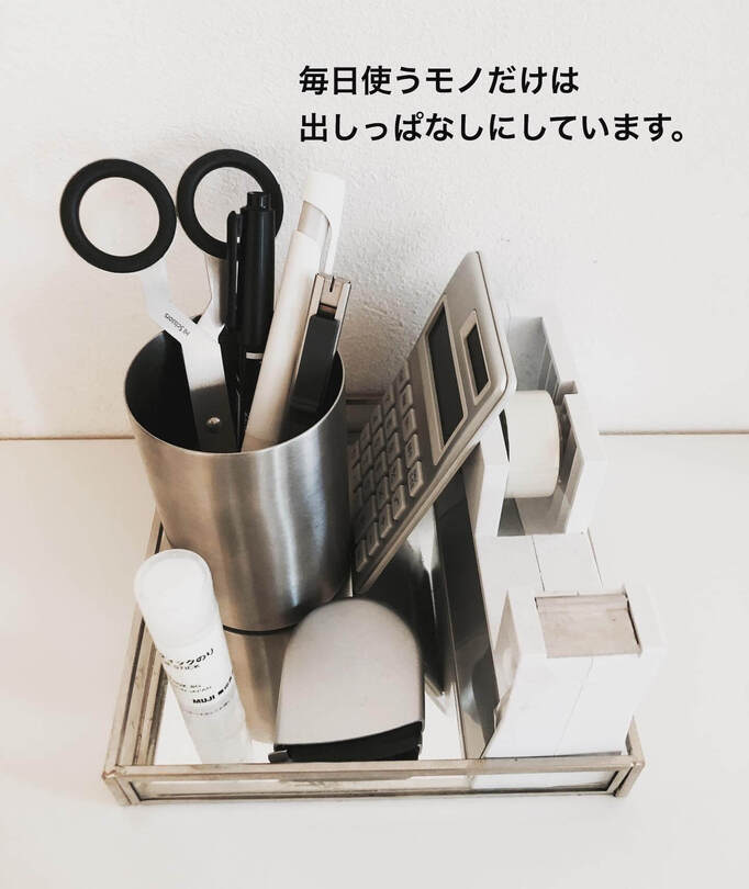 むじたんさんは、毎日必ず使うものだけをひとまとめにして出しっぱなしに。毎日必ず使うものは、1〜2アクションで取れるようにすることがポイント。