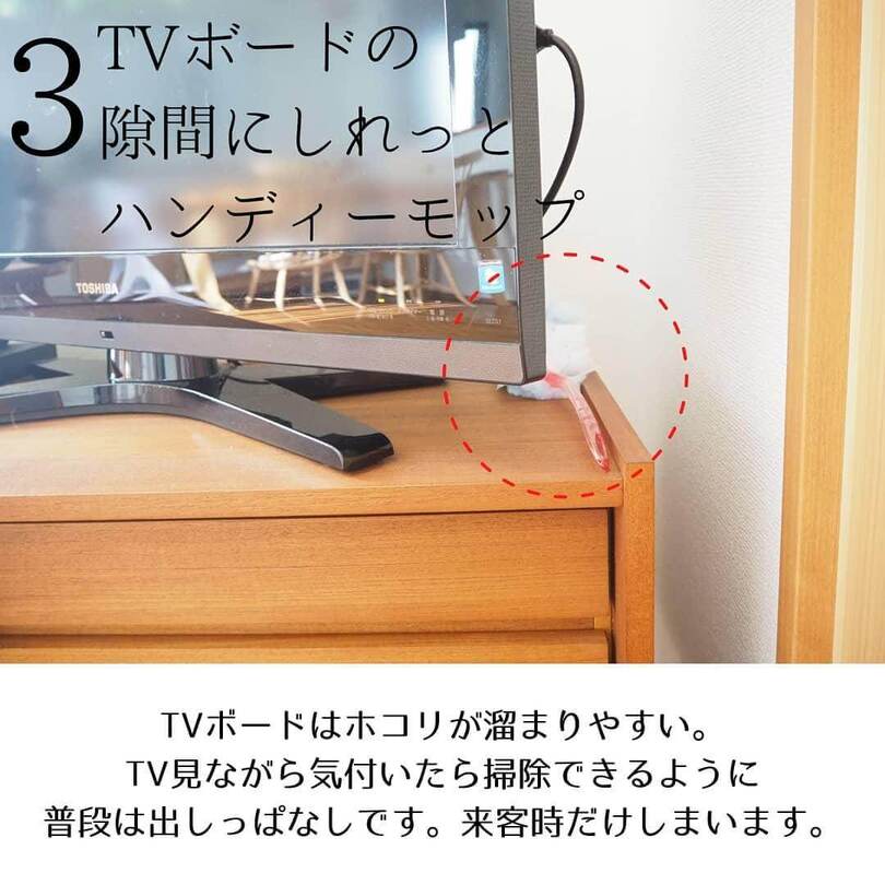 ほこりが気になるテレビボード周りにはハンディモップを。