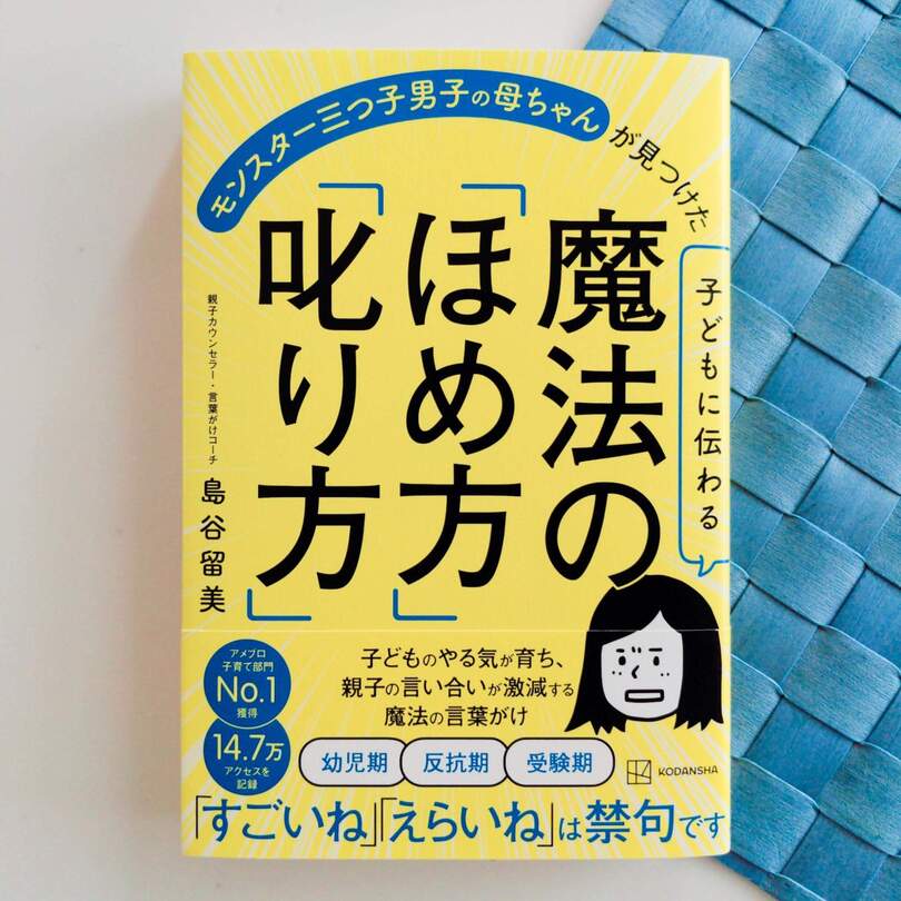 つい「すごい!」「えらいね!」「上手~!」というお決まりの言葉ばかりになってしまうんです。ほめ方のバリエーションを増やせないものかと悩んでいたときに、出会ったのがこちらの『魔法の「ほめ方」「叱り方」』(島谷留美著・講談社刊)。まず本にかけられた帯から衝撃でした。