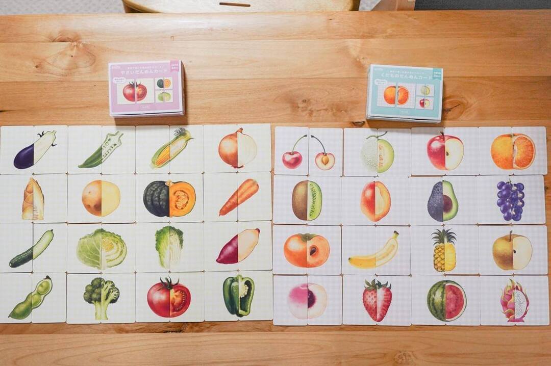今回筆者は、キャンドゥでひと味違った絵合わせカード、「やさいだんめんカード」「くだものだんめんカード」を発見!