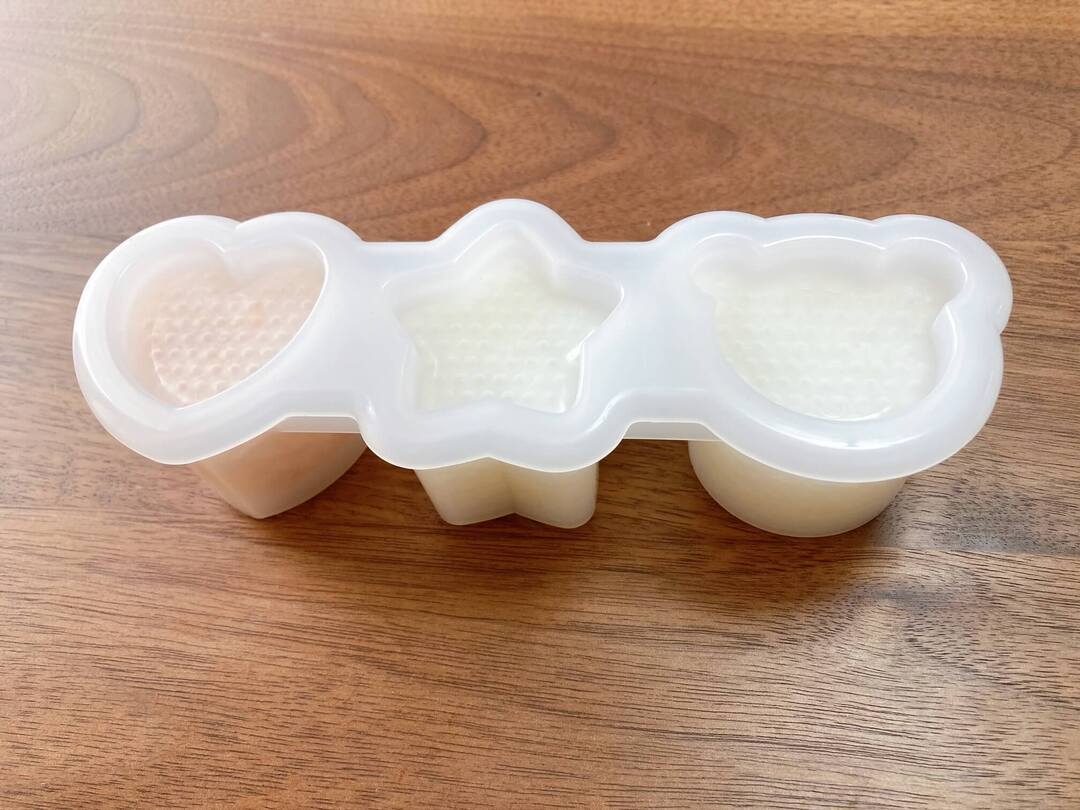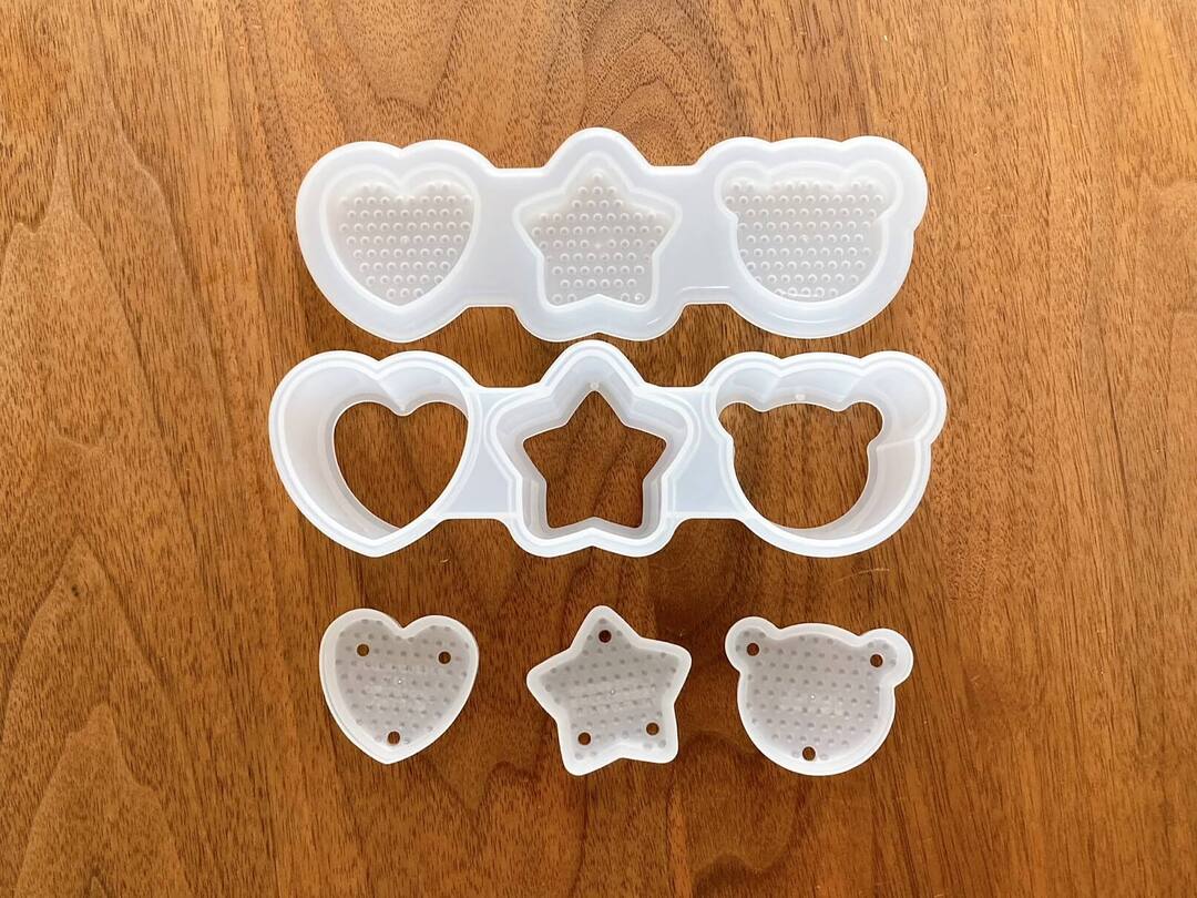 本体、底板、フタのセットで、ハート、星、くまの3種類のおにぎりが簡単に作れます。