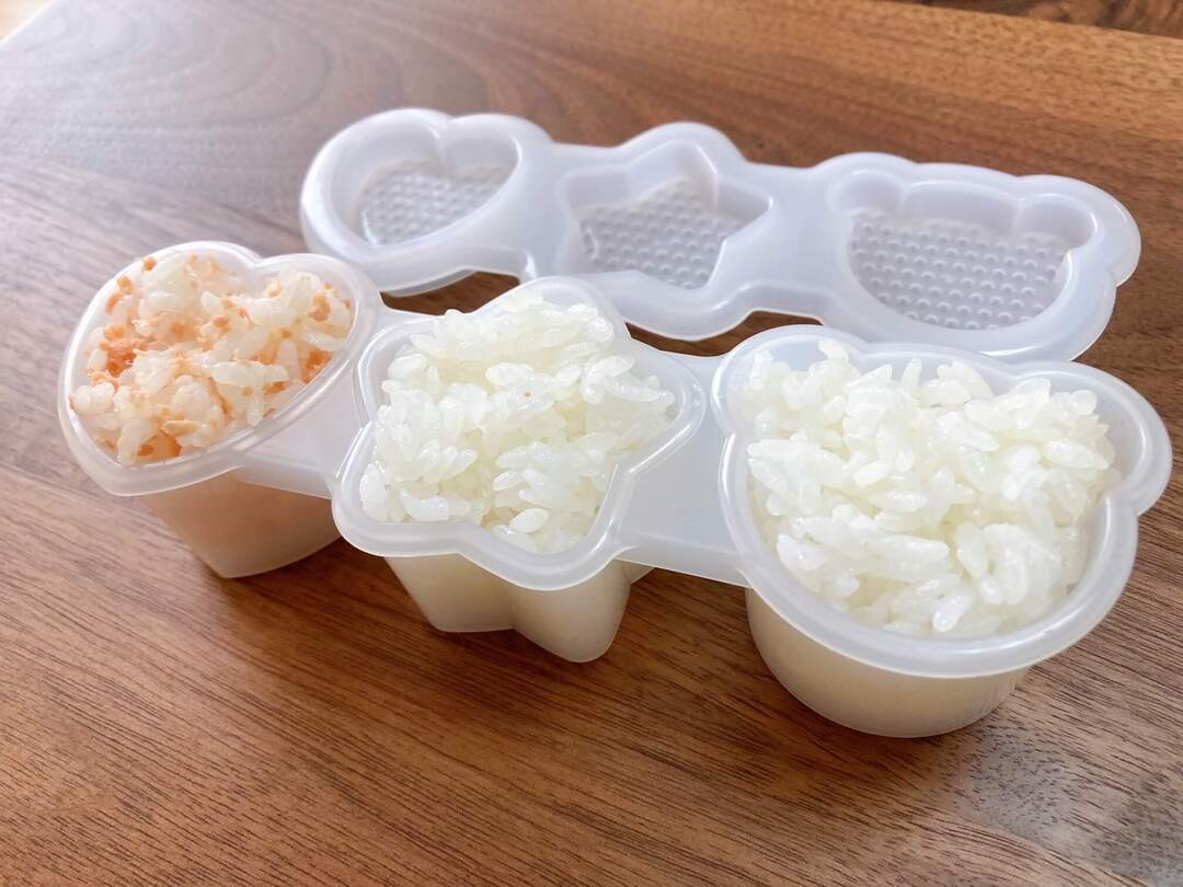 今回は、かわいい形のおにぎりができるセリアの型を使ってみました。