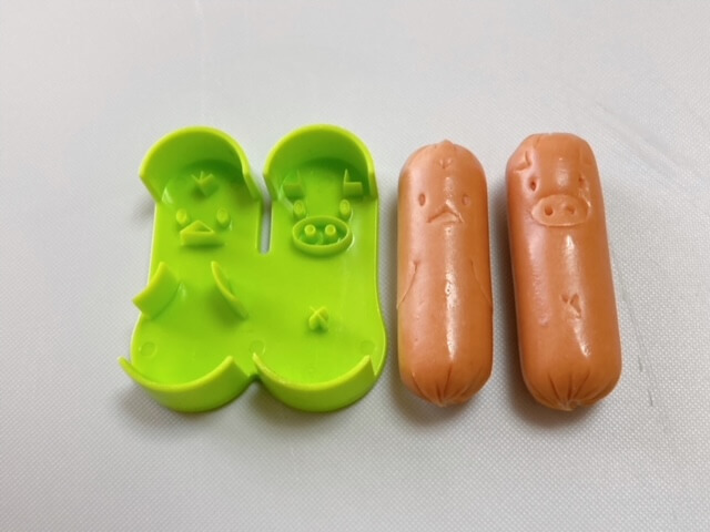 ブタとペンギンは型にウインナーを押しつけるだけ!一瞬で顔や手などができます。